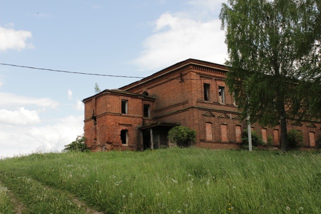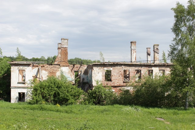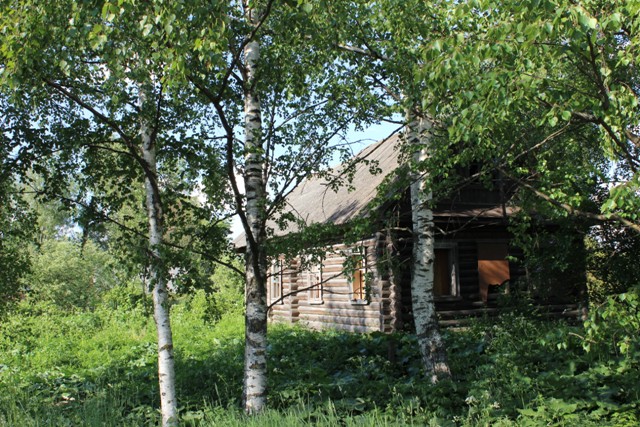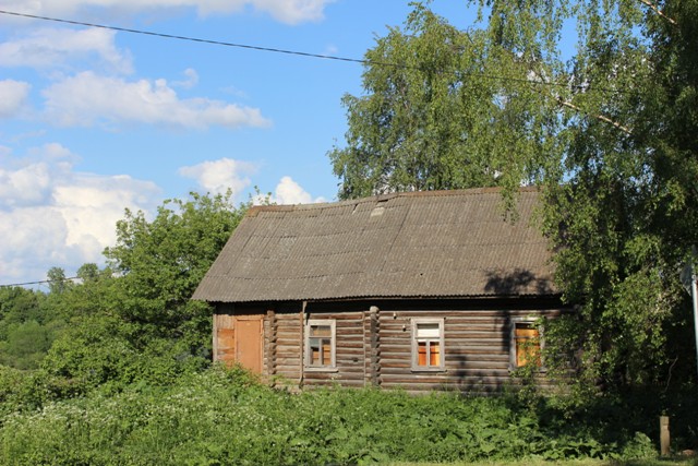 Идем дальше, контраст — старый полуразрушенный кирпичный дом и брусовая избушка напротив.