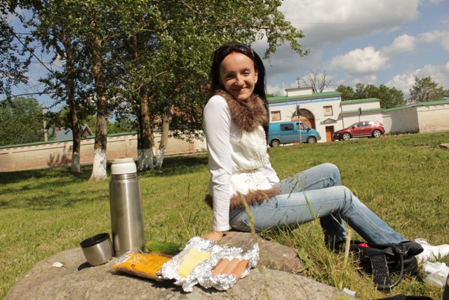 Напротив монастыря есть уютная полянка, тут не грех и чаек с бутербродами схомячить.