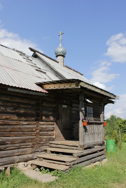 На дороге нам светят солнечные зеленые купола. Идем туда. Тоже церквушка древняя с купальней сзади.