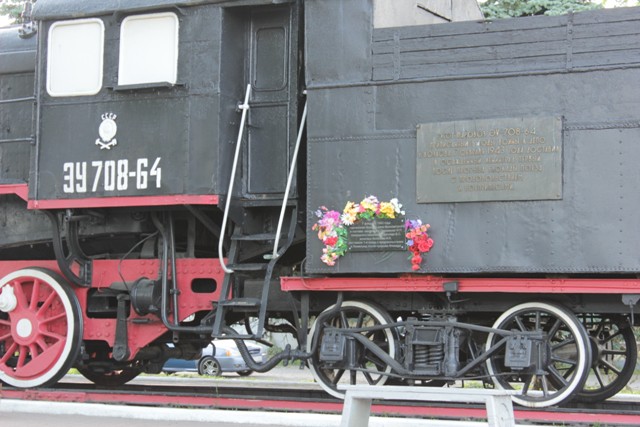 На вокзале стоит паровоз-памятник
