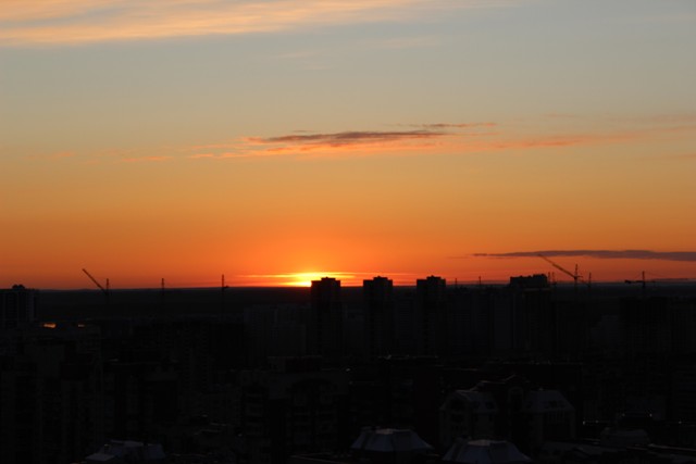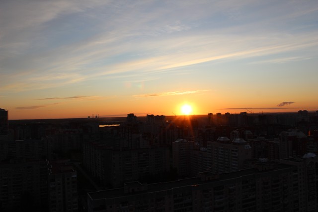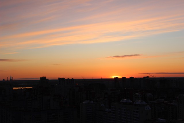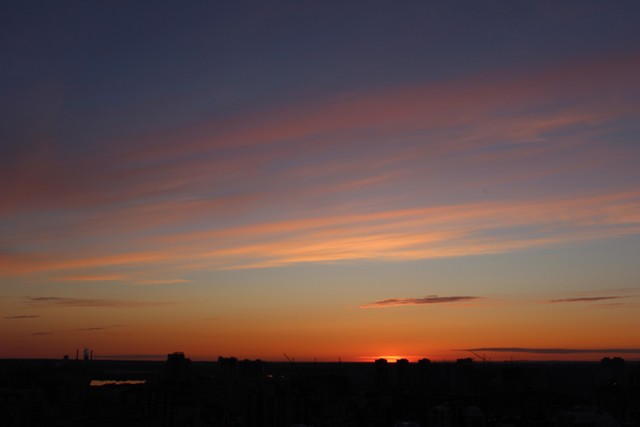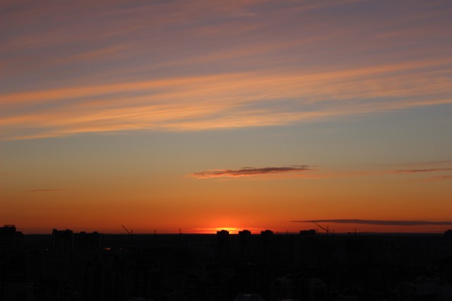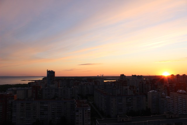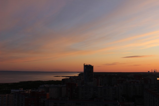 Оказывается, закаты бывают красивыми не только в далеких странах, но и совсем близко от дома. В данном случае, мне даже не пришлось ехать в другой район, что иногда бывает крайне мучительно и затруднительно, все-таки где родился — там и пригодился. Вот, Бразилия — это легко, а в Купчино — далековато.