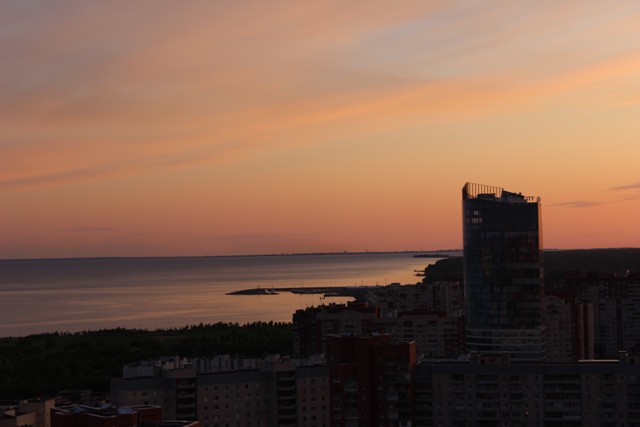 Закат нашел меня сам, всего-то стоило оказаться в гостях у прекрасных людей, и вот — перед тобой море, дома, аквапарк, парк 300-летия и практически весь мой горячо любимый район.