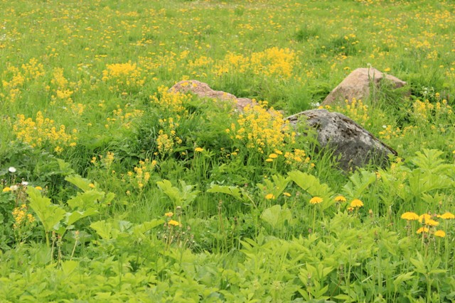 Помимо одуванчиков растут и другие цветы. Как-то тихо, хорошо и спокойно. И пускай нет солнца, это лишь помогает раздумьям.
