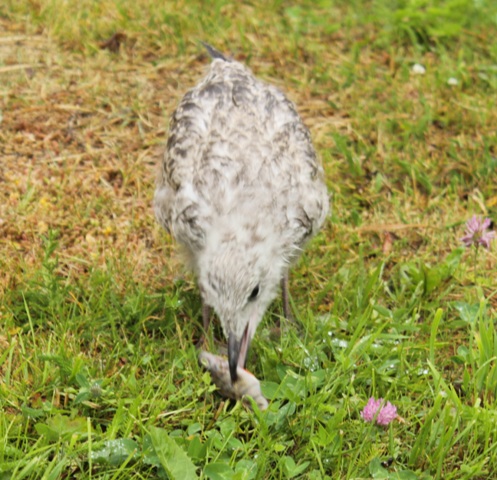 Перед нами зашагали птенцы. Огромные птицы, похожие на чаек, но цвета другого. Гид сказал, что это птенцы баклана, один из которых выпал из окна и не умеет летать. Его кормят пока, но он так и не научился. Жаль. Так может и не научится никогда, раз кормят. И кормят неплохо — хлеб, рыбка.
