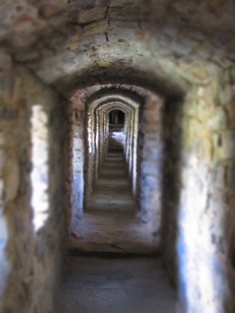 Идем внутрь. Внутри замок не очень большой, но интересный. Помимо сувенирных лавок, можно попасть в настоящее подземелье.