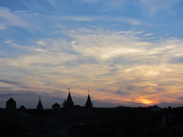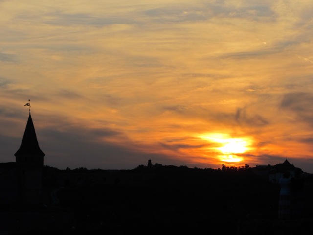 Прогулка мне очень понравилось. Атмосфера в городе хорошая, туристов много. Гулять приятно, не хватает только конных повозок, стучащих копытами по мостовой, и какого-нибудь невероятного романтикА. Графа Дракулы с тростью со своими пронзительными глазами или девушек в длинных платьях с веерами, с которыми «за долгий взгляд короткой встречи ах это право — не цена». В остальном все великолепно. Хотелось бы даже еще времени, но у нас был план. На обратной дороге мы посетили Львов, город тоже интересный и красивый. О нем в следующий раз. А с утра я все-таки дошла до замка еще раз. До креста путь оказался через обрыв неблизкий, поэтому довольствовались солнечной панорамой.