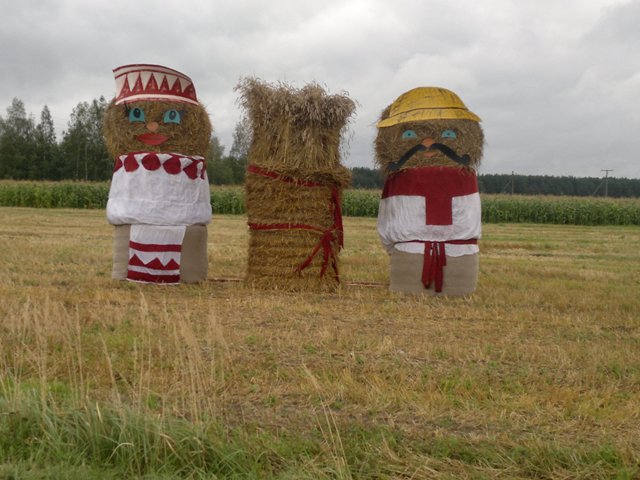 А еще дальше нас встречали необычные фигуры из сена, которыми была украшена практически вся трасса. Еще бы, время сена и урожая. И креатива.