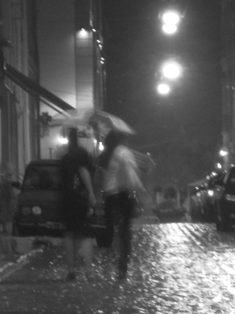 И вот неожиданно полил дождь. В начале пару капель показалось случайностью, затем капель стало больше, а затем еще больше. И вдруг полило в буквальном смысле как из ведра. Не совсем было понятно, что лучше, ждать в кабаке окончания непогоды или все-таки попробовать добежать до отеля. Решить было сложно, поэтому какое-то время мы просто слушали дождь. Каждому было, о чем подумать. Даже бульдогу.