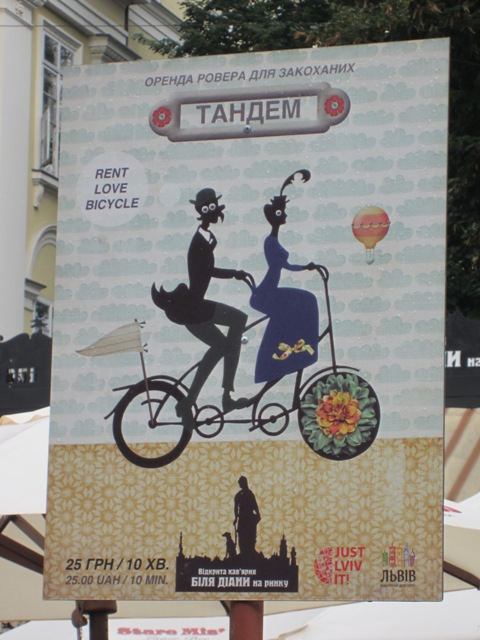 Можно взять в аренду тандем-велосипед и романтично прокатиться по львовским мостовым.