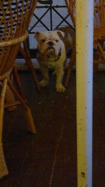 В центре нашли кафешку, где было все необходимое — еда, вино и бульдог.