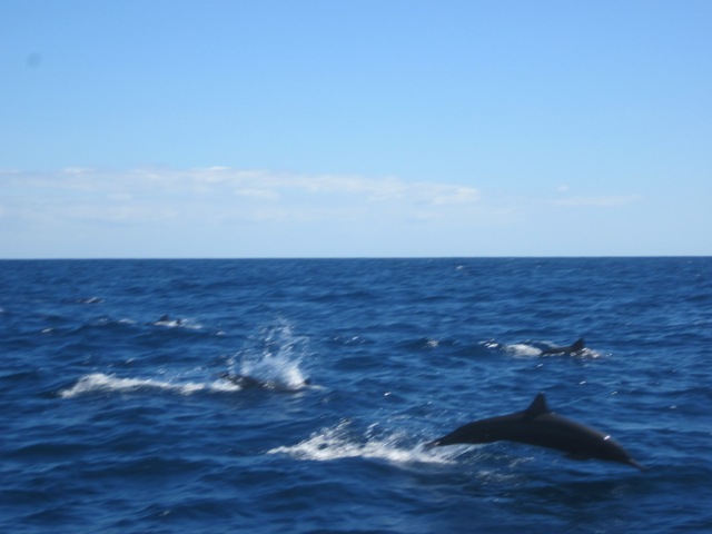 Наконец случилось еще кое что. Абсолютно неожиданно мы попали в место с тысячей дельфинов. Это было просто удивительно, они прыгали, играли, догоняли лодку, тысячи. Повсеместно! Кадры ясен пень не удались, все таки животные быстрые. Но впечатления на всю жизнь. Мы бросили камеры и просто лицезрели эту невероятную картину. Вот стайка тут, а вот там. А вот снова тут. Глаза разбегаются, вот бы потрогать это гладкое серое чудо.