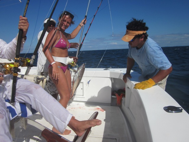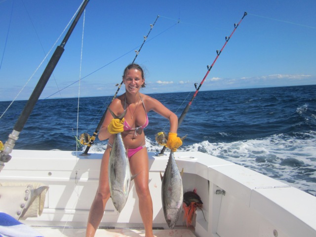 Хорошо член экипажа помогал мне, и так я вытащила тунца. Моего первого тунца.